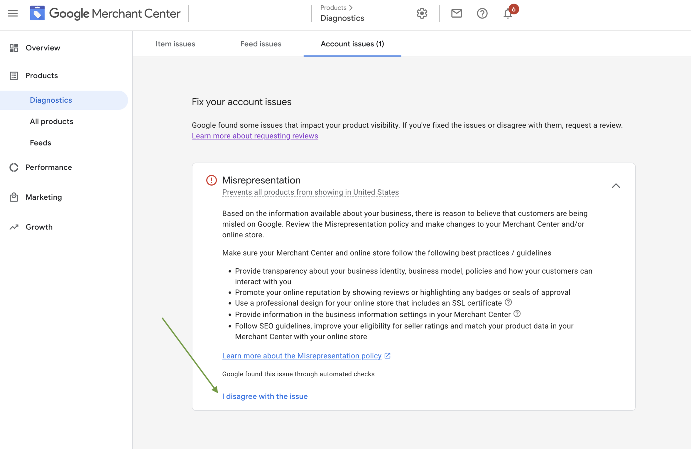 Here are some common reasons for Google Merchant Center suspension related to misrepresentation: